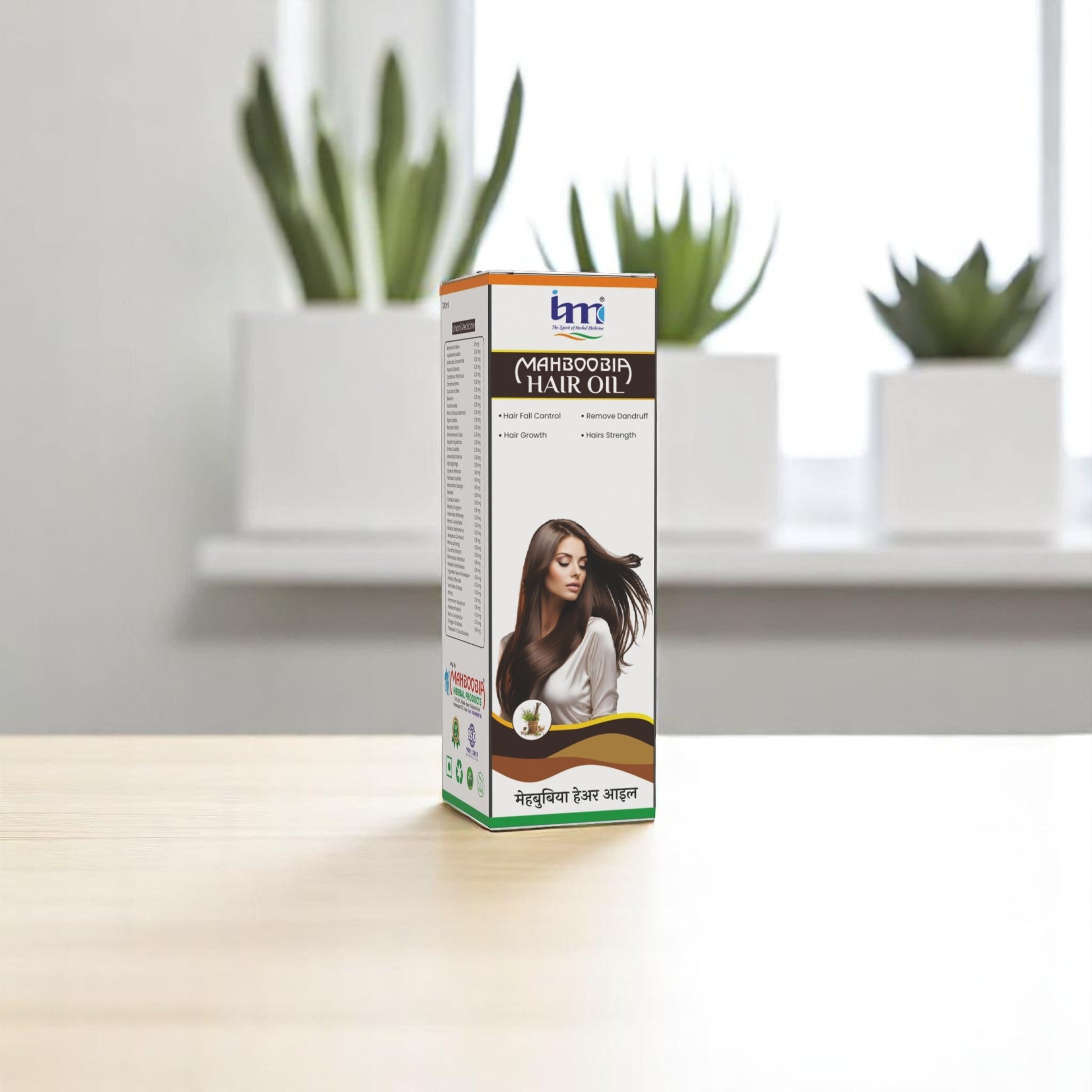 IMC Herbal Mahaboobia Hair Tonic Natural Herbal Tonic for Hair Growth, Strength & Shine IMC Herbal Mahaboobia Hair Tonic is a traditional Unani herbal preparation specially formulated to help reduce hair fall, promote hair growth, and strengthen hair roots naturally. Enriched with time-tested herbs, it nourishes the scalp, improves blood circulation, and makes your hair healthy, soft, and shiny without harmful chemicals. ________________________________________ Key Benefits: • Helps reduce hair fall and strengthen roots. • Promotes new hair growth naturally. • Improves scalp health and prevents dandruff. • Adds shine, softness, and thickness to hair. • 100% herbal and safe for regular use. ________________________________________ Main Ingredients: • Amla (Indian Gooseberry) – Boosts hair strength and shine. • Bhringraj & Brahmi – Known for promoting hair growth and scalp nourishment. • Neem & Herbal Oils – Protect against dandruff and scalp infections naturally. ________________________________________ How to Use: 1. Apply the tonic directly to the scalp. 2. Massage gently with fingertips for a few minutes. 3. Leave for at least 30 minutes or overnight, then wash with a mild herbal shampoo. 4. Use 2–3 times a week for best results. ________________________________________ Why Choose IMC Herbal Mahaboobia Hair Tonic? ✔ 100% herbal and free from harsh chemicals. ✔ Suitable for men and women of all hair types. ✔ Strengthens hair from root to tip for healthy, long, and shiny hair. ✔ Trusted IMC Herbal quality for natural hair care. ________________________________________ ✅ Pack Size: 100ml / 200ml ✅ For strong, thick, and naturally beautiful hair.