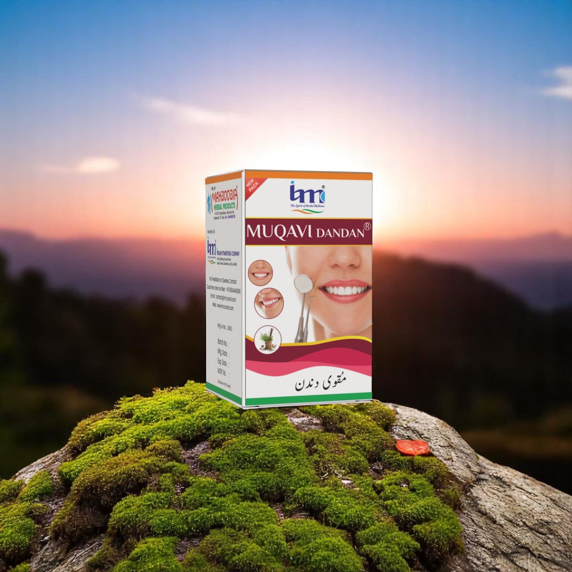 IMC Herbal Muqavvi Dandan is a traditional Unani dental care formula made with natural herbs that help strengthen teeth, fight germs, and keep gums healthy. Regular use cleans teeth deeply, prevents bad breath, and protects against tooth decay and cavities, giving you fresh breath and strong teeth naturally.