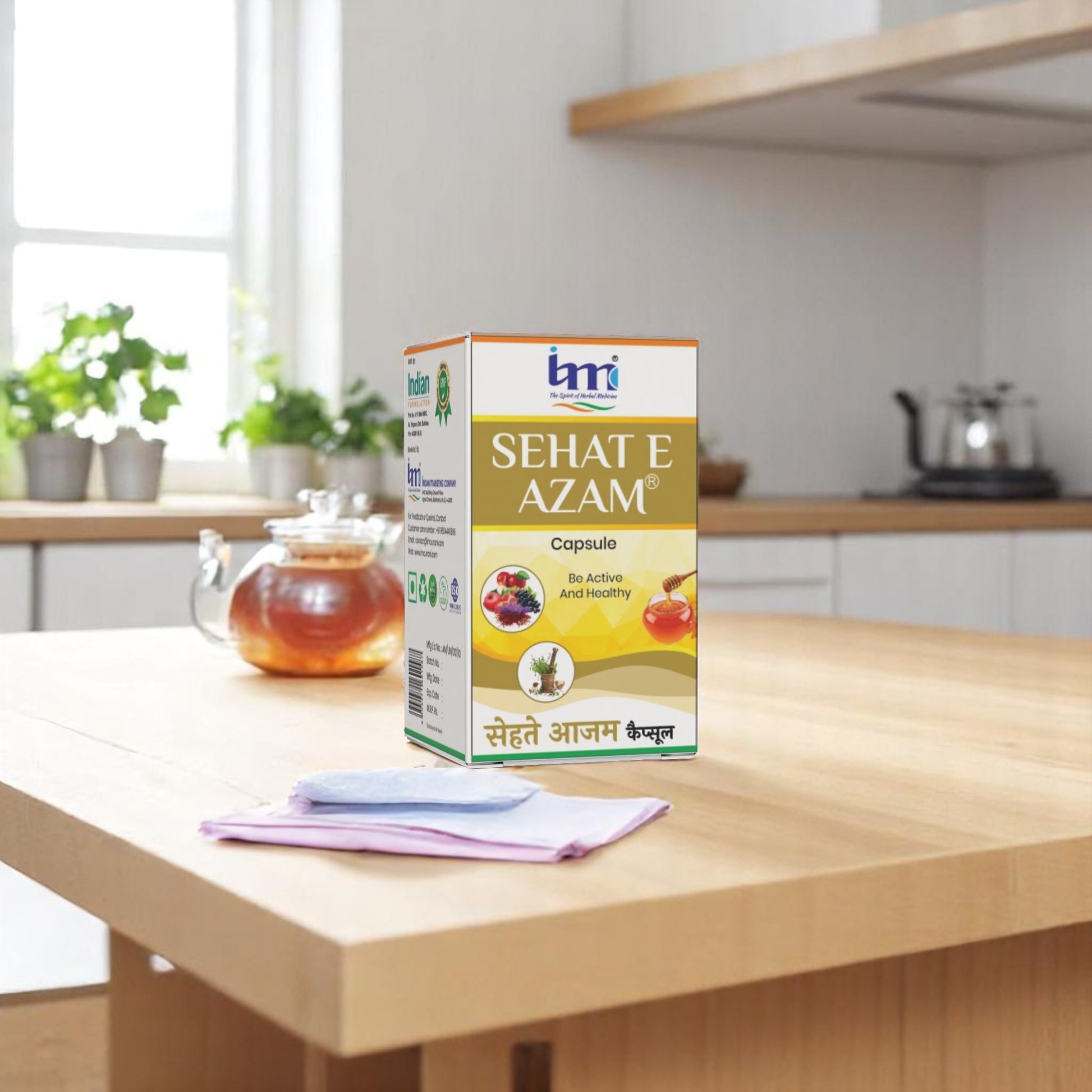 IMC Herbal Sehat-E-Azam Capsule Natural Herbal Supplement for Strength, Energy & Stamina IMC Herbal Sehat-E-Azam Capsule is a traditional Unani herbal formulation designed to help increase strength, boost stamina, and overcome general weakness naturally. It nourishes the body, strengthens nerves, and supports overall physical and mental well-being, making it ideal for people with fatigue, low energy, or poor vitality. ________________________________________ Key Benefits: • Helps restore strength, stamina, and vitality naturally. • Reduces fatigue, weakness, and low energy levels. • Strengthens nerves and supports overall health. • Boosts physical performance and immune system function. • 100% herbal and safe for long-term daily use. ________________________________________ Main Ingredients: • Ashwagandha – Known for improving energy and reducing fatigue. • Shilajit – Supports vitality, stamina, and overall strength. • Safed Musli & Other Unani Herbs – Nourish the body and promote wellness. ________________________________________ How to Use: • Take 1 capsule twice daily with warm water or milk, or as advised by a physician. ________________________________________ Why Choose IMC Herbal Sehat-E-Azam Capsule? ✔ 100% herbal and free from harmful chemicals. ✔ Safe for men, women, and teenagers. ✔ Helps maintain daily energy, strength, and overall health naturally. ✔ Trusted IMC Herbal quality for long-term wellness support. ________________________________________ ✅ Pack Size: 30 / 60 Capsules ✅ For natural support in improving strength, stamina, and overall vitality.