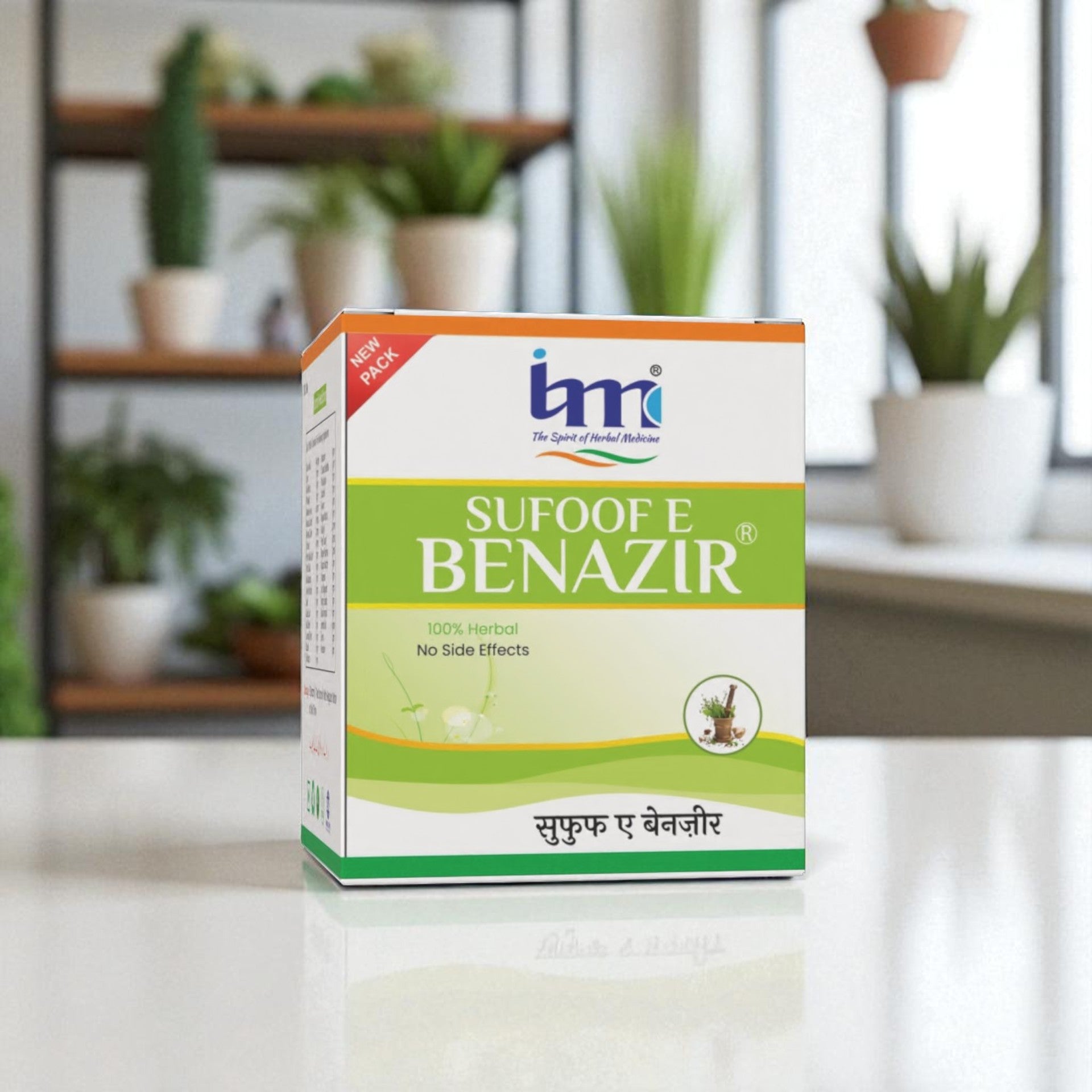 IMC Herbal Sufoof-E-Benazir Natural Herbal Support for Weight Management & Fat Reduction IMC Herbal Sufoof-E-Benazir is a traditional Unani herbal powder specially formulated to help reduce obesity, burn extra body fat, and support natural weight loss. It works by improving digestion, boosting metabolism, and controlling unnecessary fat storage, helping you achieve a healthier and fitter body naturally. ________________________________________ Key Benefits: • Helps reduce excess weight and obesity naturally. • Supports fat burning and proper metabolism. • Improves digestion and removes harmful toxins from the body. • Promotes energy, fitness, and a healthy lifestyle. • 100% herbal and safe for long-term use with no side effects. ________________________________________ Main Ingredients: • Triphala (Haritaki, Amla, Bibhitaki) – Helps in digestion and fat breakdown. • Ajwain & Jeera – Improve metabolism and reduce bloating. • Other Unani Herbs – Support natural weight management and fat loss. ________________________________________ How to Use: • Take 1–2 teaspoons with lukewarm water twice daily, preferably before meals, or as directed by a physician. • Combine with a balanced diet and exercise for best results. ________________________________________ Why Choose IMC Herbal Sufoof-E-Benazir? ✔ 100% natural and chemical-free formulation. ✔ Supports safe and gradual fat reduction. ✔ Helps maintain healthy digestion and metabolism. ✔ Trusted IMC Herbal quality for weight management. ________________________________________ ✅ Pack Size: 100g / 200g ✅ For natural support in reducing obesity, extra fat, and excess weight.