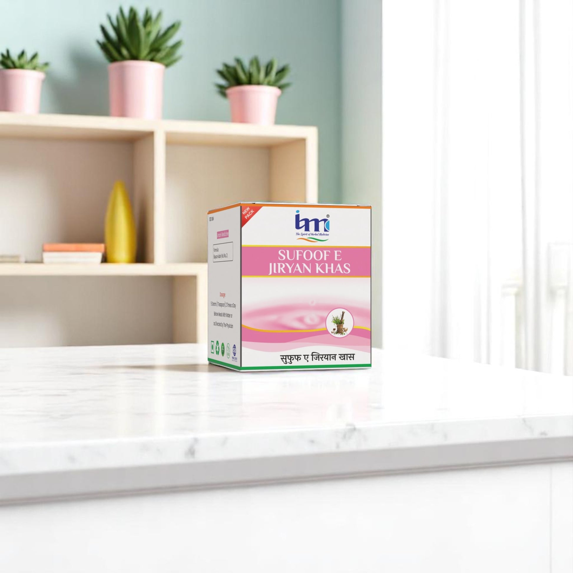 IMC Herbal Sufoof-E-Jiryan Khas Natural Herbal Support for Male Reproductive Health & Vitality IMC Herbal Sufoof-E-Jiryan Khas is a traditional Unani herbal powder specially formulated to help improve semen viscosity, control nocturnal emissions, manage spermatorrhoea, and reduce premature ejaculation naturally. It nourishes the reproductive system, strengthens nerves, and boosts overall stamina and confidence in men. ________________________________________ Key Benefits: • Helps improve semen quality and viscosity naturally. • Effective in controlling nocturnal emissions (nightfall). • Supports management of spermatorrhoea (involuntary sperm discharge). • Helps in reducing premature ejaculation, improving stamina. • 100% herbal and safe for long-term use with no harmful chemicals. ________________________________________ Main Ingredients: • Ashwagandha – Strengthens nerves and boosts reproductive health. • Kaunch Beej – Improves semen quality and stamina naturally. • Shatavari & Other Unani Herbs – Support healthy male sexual function and vitality. ________________________________________ How to Use: • Take 1–2 teaspoons with lukewarm milk or water twice daily, or as advised by a physician. ________________________________________ Why Choose IMC Herbal Sufoof-E-Jiryan Khas? ✔ 100% natural and chemical-free formulation. ✔ Supports overall male reproductive health and vitality. ✔ Helps in natural stamina improvement and confidence boost. ✔ Trusted IMC Herbal quality for men’s wellness. ________________________________________ ✅ Pack Size: 50g / 100g ✅ For natural support in improving semen quality, controlling nightfall, and managing premature ejaculation.